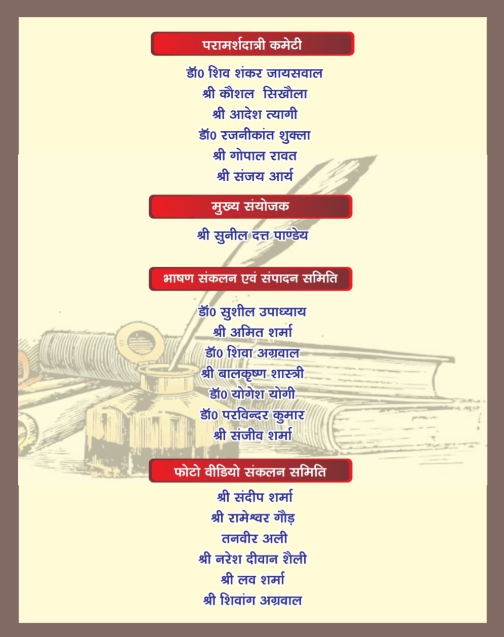 आज इस संदर्भ में एक समीक्षा बैठक भी आयोजित की गई जिसमें मुख्य संयोजक सुनील दत्त पाण्डेय, संयोजक गुलशन नैय्यर, डॉ शिवा अग्रवाल अध्यक्ष धर्मेंद्र चौधरी, महासचिव दीपक मिश्रा, कोषसचिव काशीराम सैनी, डॉ रजनीकांत शुक्ला, संजय आर्य, अमित कुमार गुप्ता,नरेश दिवान शैली, संदीप रावत , डॉ मनोज सोही, बालकृष्ण शास्त्री, प्रतिभा वर्मा, ठाकुर शैलेन्द्र सिंह, आशीष मिश्रा, संजय रावल, के के पालीवाल, एम.एस.नवाज, श्रवण कुमार झा, मनोज खन्ना, विकास झा सहित अन्य पत्रकार साथी उपस्थित रहे।