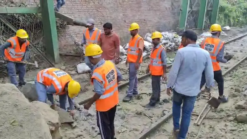 हरिद्वार। भीमगोडा स्थित काली माता मंदिर के पास आज सुबह पुनः मलवा आने से रेलवे ट्रैक बाधित हो गया है, जिससे ट्रेनों का आवागमन बंद हो गया। प्रशासन ने सूचना मिलते ही तुरंत रेलवे ट्रेक को खोलने के लिए प्रयास शुरू कर दिए हैं, बीती रात हुई तेज बारिश के बाद रेलवे ट्रेक पर मलबा आ गया जिससे ट्रेक बाधित हो गया। हरिद्वार से ऋषिकेश और देहरादून जाने वाली ट्रेनों का आवागमन निरस्त करना पड़ा, प्रशासन द्वारा रेलवे ट्रेक को सुचारु करने का कार्य तीव्र गति से जारी है।