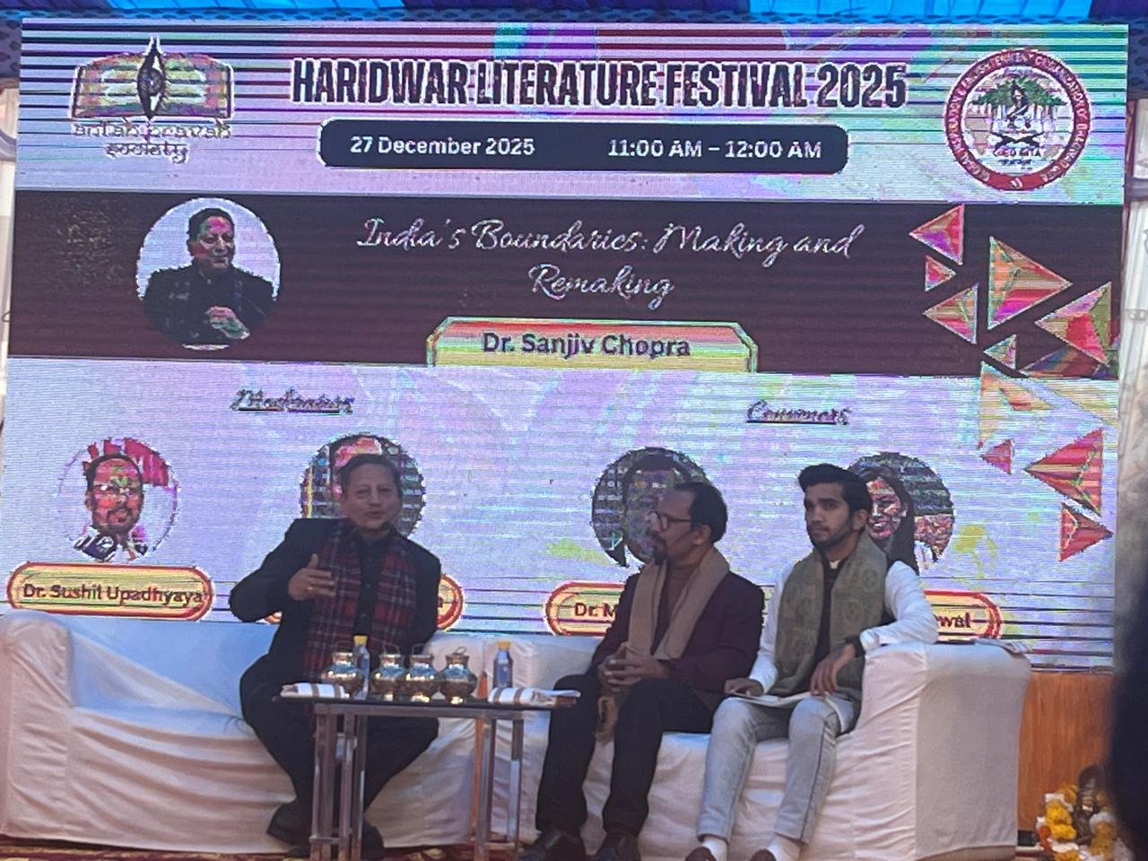 हरिद्वार। हरिद्वार लिटरेचर फेस्टिवल के दूसरे दिन “India’s Boundaries: Making & Remaking” विषय पर एक महत्वपूर्ण संवाद सत्र आयोजित किया गया। सत्र के मुख्य वक्ता प्रख्यात इतिहास लेखक एवं पूर्व निदेशक, लालबहादुर शास्त्री राष्ट्रीय प्रशासनिक अकादमी, डॉ. संजीव चोपड़ा रहे। सत्र के माडरेटर डॉ. सुशील उपाध्याय एवं सचिन चौहान रहे।