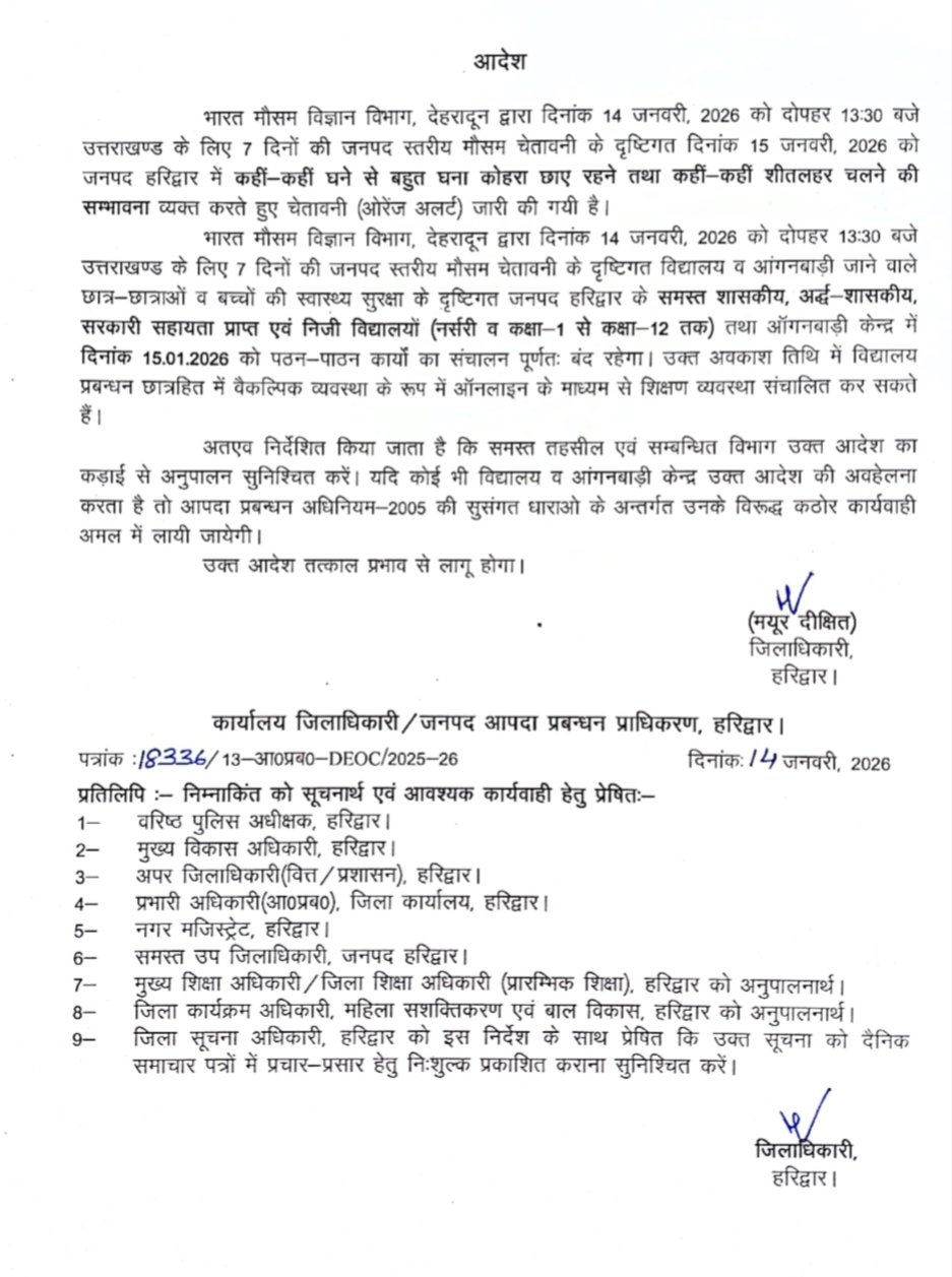 • 15 जनवरी को जिलाधिकारी ने घोषित किया अवकाश