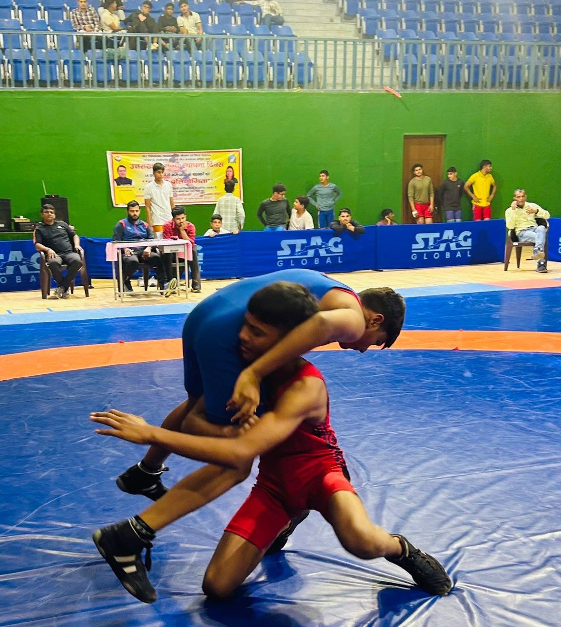 हरिद्वार 10 नवम्बर, खेल निदेशालय उत्तराखण्ड देहरादून के तत्वावधान एवं जिला प्रशासन,हरिद्वार के मार्गदर्शन में जिला खेल कार्यालय हरिद्वार द्वारा उत्तराखण्ड राज्य स्थापना दिवस के अवसर पर दिनांक 09 नवम्बर 2024 को विभिन्न खेलो में प्रतियोगिताओं का आयोजन किया गया, जिसमें हॉकी प्रतियोगिता, फुटबाल प्रतियोगिता, एथलेटिक्स प्रतियोगिता, खो-खो प्रतियोगिता, कराटे प्रतियोगिता एवं क्रिकेट प्रतियोगितायें आयोजित की गई। इसके अतिरिक्त दिनांक 10 नवम्बर 2024 को 14 एवं 17 वर्ष के आयु के बालकों की जिला स्तरीय कुश्ती प्रतियोगिता का आयोजन प्रातः 08.00 बजे से न्यू मल्टीपरपज हॉल, वन्दना कटारिया हॉकी स्टेडियम रोशनाबाद में किया गया। प्रतियोगिता का शुभारम्भ गजेन्द्र पहवान रेलवे कुश्ती कोच द्वारा किया गया। प्रतियोगिता का समापन एवं पुरस्कार वितरण डा0 एस0पी0 देशवाल, अध्यक्ष उत्तराखण्ड कुश्ती संघ द्वारा किया गया।