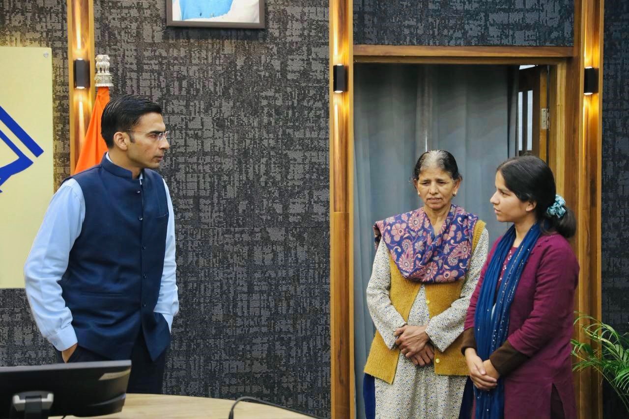 देहरादून। चन्द्रबनी निवासी प्रियंका कुकरेती ने माह अक्टूबर में अपनी माता संग जिलाधिकारी सविन बंसल से उनके कार्यालय कक्ष में मिलकर गुहार लगाई थी कि उनकेे परिवार की आर्थिक स्थिति बेहद खराब है, पिता की वर्ष 2021 में मृत्यु हो गई है भाई दिव्यांग है। जिस पर जिला प्रशासन ने प्रियंका को रायफल फंड से 25 हजार आर्थिक सहायता प्रदान की थी। प्रियंका द्वारा जिलाधिकारी से रोजगार दिलाने का अनुरोध किया गया था जिस पर प्रियंका को उनकी योग्यता के अनुसार निजी शैक्षिण संस्थान में रोजगार दिलाया था। निजी संस्थान में नौकरी मिलने उपरांत अपनी माता संग जिला प्रशासन का धन्यवाद करने कलेक्ट्रेट पहुंची प्रियंका ने जिलाधिकारी से मुलाकात कर उनका व उनकी टीम का धन्यवाद किया।