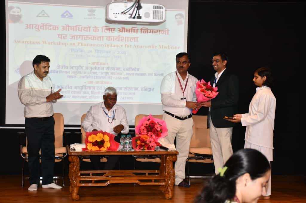 हरिद्वार। आयुष मंत्रालय, भारत सरकार के अंतर्गत सेंट्रल काउंसिल फॉर रिसर्च इन आयुर्वेदिक साइंसेज (CCRAS) तथा रीजनल आयुर्वेद अनुसंधान संस्थान, रानीखेत के संयुक्त तत्वावधान में पंतजलि आयुर्वेद कॉलेज, हरिद्वार में “फार्माकोविजिलेंस पर एक दिवसीय कार्यशाला” का सफल आयोजन किया गया।